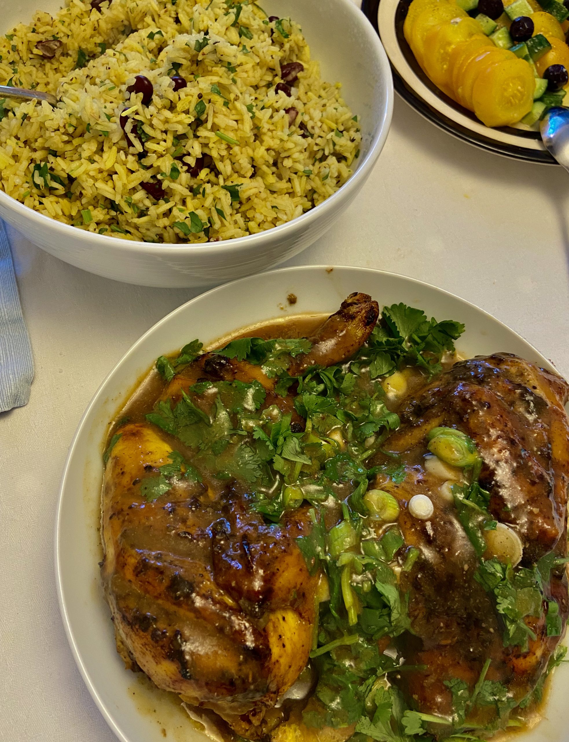 Steeped overnight in my own jerk marinade and slow roasted. Served with Rice & Peas.
