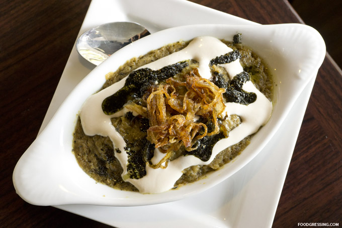 This staple Persian dip is made with roasted and smashed aubergines with onions, garlic, turmeric, mint and Kashk (a fermented dairy product).