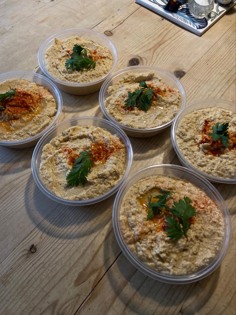 Soaked and cooked chickpeas using our unique recipe with Onions, Garlic, Tahini, lemon juice and Moorish spices.