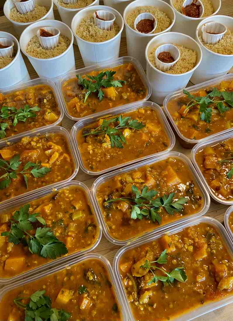 Peppers, onions, tomatoes and butternut squash. With Harissa.